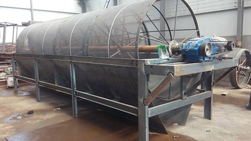 滾筒裝置傾斜安裝于機架上。電動機經(jīng)減速機與滾筒裝置通過聯(lián)軸器連接在一起,驅動滾筒裝置繞其軸線轉動。當物料進入滾筒裝置后,由于滾筒裝置的傾斜與轉動,使篩面上的物料翻轉與滾動,使合格物料(篩下產品)經(jīng)滾筒后端底部的出料口排出,不合格的物料(篩上產品)經(jīng)滾筒尾部的排料口排出。由于物料在滾筒內的翻轉、滾動,使卡在篩孔中的物料可被彈出,防止篩孔堵塞。滾筒篩砂機、滾筒篩分機與滾筒篩的原理構造幾乎相同,是人們對它的認識和叫法上存在差異。